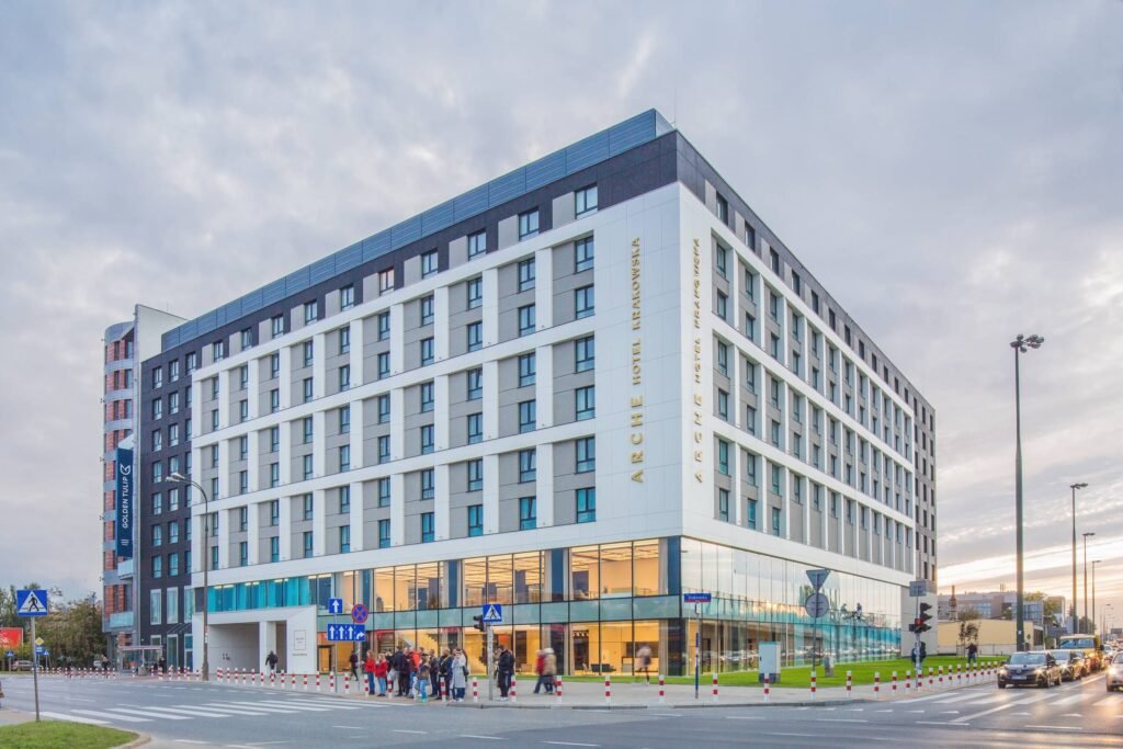 Hotel konferencji – ARCHE Hotel Krakowska to 4 gwiazdkowy hotel biznesowy z 344 pokojami ulokowany niedaleko lotniska Okęcie (5 min taksówką, lub 24 minuty tramwajem nr 9 ze stacji Warszawa Centralna). Z hotelem tym sąsiadują bezpośrednio jeszcze 2 inne hotele – ARCHE Geologiczna (3 gwiazdki, 80 pokoi) oraz Golden Tulip Warsaw Airport (4 gwiazdki, 90 pokoi), tak więc jest tam łącznie 514 pokoi w tej samej lokalizacji. Koszt noclegu w ARCHE Krakowska wynosi 400 PLN. Link do rezerwacji noclegu jest TUTAJ.